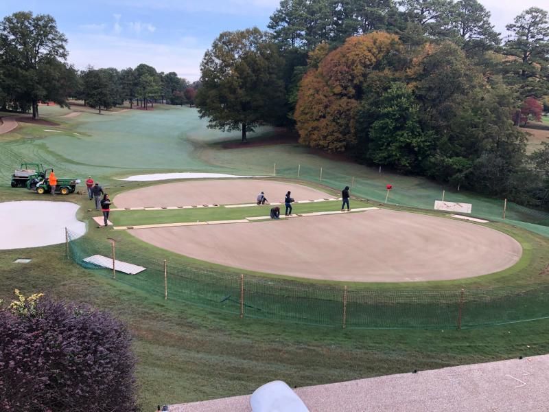 Photo: Late fall 2019 sodding of 777 bentgrass on the greens at the CC of Virginia, Richmond, VA.