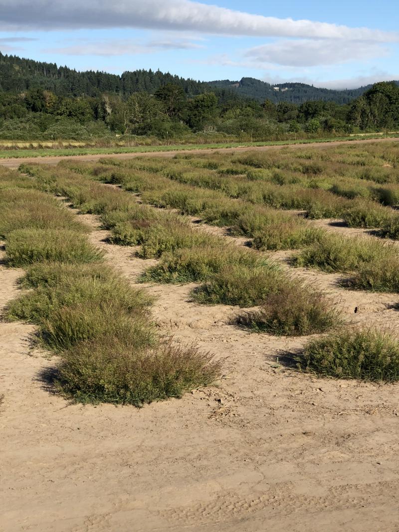 Photo: June, 2019. This new 007XL bentgrass variety represent eight elite parents, randomly replicated six times in a breeder nursery. Seed harvested from this nursery will be used to establish a foundation then certified production fields in the State of Oregon. Seed Research of Oregon will have exclusive world wide production and marketing rights to this new variety.
